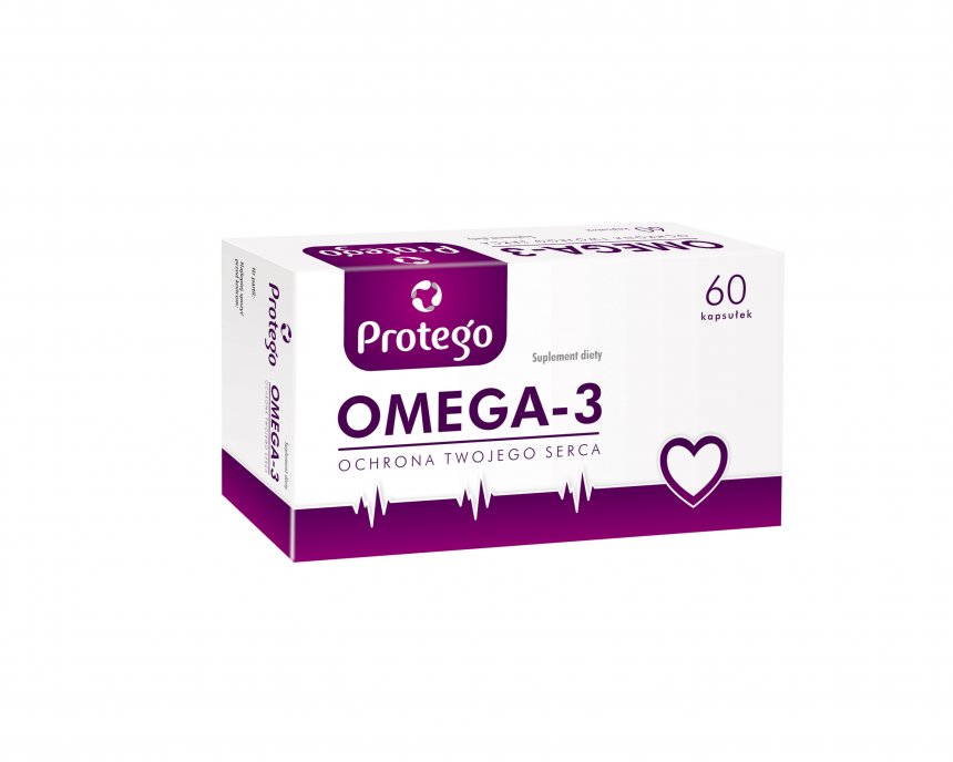 Protego OMEGA-3 60 kapsułek / Suplement diety kapsułki Suplement diety dla ochrony serca. Kwasy Omega-3 z ryb morskich korzystnie wpływają na układ sercowo-naczyniowy. Protego OMEGA-3 zawiera najwyższej jakości kanadyjski olej z ryb morskich będący źródłem wielonienasyconych kwasów tłuszczowych (EPA i DHA). Suplement diety uzupełnia dietę w nienasycone kwasy tłuszczowe Omega-3: EPA – kwas eikozapentaenowy DHA – kwas dokozaheksaenowy. Protego OMEGA-3 zawiera 300 mg kwasów tłuszczowych omega-3 (EPA i DHA). EPA i DHA przyczyniają się do prawidłowego funkcjonowania układu krwionośnego. . Produkt dostarcza dużej ilości kwasów wielonienasyconych. Zastępowanie w diecie tłuszczów nasyconych tłuszczami nienasyconymi pomaga w utrzymaniu prawidłowego poziomu cholesterolu we krwi. DHA wpływa również pozytywnie na procesy widzenia oraz przyczynia się do prawidłowego funkcjonowania mózgu. Korzystne działanie występuje w przypadku spożywania 250 mg DHA dziennie. Skład Wskazania Jak stosować Informacje dodatkowe Skład zalecanej do spożycia dziennej porcji Protego OMEGA-3 Substancje odżywcze Zawartość w 2 kapsułkach Olej z ryb, w tym: 1000 mg EPA - kwas eikozapentaenowy (18%) 180 mg DHA - kwas dokozaheksaenowy (12%) 120 mg Składniki: olej rybi (źródło kwasów omega-3), żelatyna, substancja utrzymująca wilgoć - glicerol, woda, przeciwutleniacz - mieszanina tokoferoli EPA i DHA przyczyniają się do prawidłowego funkcjonowania układu krwionośnego. Zastępowanie w diecie tłuszczów nasyconych tłuszczami nienasyconymi pomaga w utrzymaniu prawidłowego poziomu cholesterolu we krwi. Protego OMEGA-3 dostarcza dużej ilości kwasów wielonienasyconych. DHA wpływa również pozytywnie na proces widzenia oraz właściwą pracę układu nerwowego - przyczynia się do prawidłowego funkcjonowania mózgu. Kwasy omega-3 nie są syntetyzowane przez organizm ludzki i trzeba je dostarczać z zewnątrz jedząc 2-3 razy w tygodniu ryby morskie lub przyjmując suplement diety Protego OMEGA-3. Zaleca się przyjmować 2 kapsułki dziennie Protego OMEGA-3 1000 Preparat stosować w trakcie spożywania posiłku lub bezpośrednio przed posiłkiem. W razie trudności z połykaniem zawartość kapsułki można wycisnąć i spożyć z pokarmem. Nie należy przekraczać zalecanej porcji do spożycia w ciągu dnia. Suplement diety nie może być stosowany jako substytut zróżnicowanej diety. Do utrzymania prawidłowego stanu zdrowia należy stosować zróżnicowaną dietę i prowadzić zdrowy tryb życia. Ostrzeżenia Nie stosować u osób z zaburzeniami krzepliwości krwi lub stosujących leki zmniejszające krzepliwość krwi. Nie stosować przy nadwrażliwości na którykolwiek ze składników preparatu. Kobiety w ciąży i matki karmiące powinny przyjmowanie preparatu skonsultować z lekarzem. Przechowywać w sposób niedostępny dla małych dzieci, w temperaturze poniżej 25°C. Wyprodukowano w Polsce dla: Salvum Lab sp. z o.o. ul. Sobieskiego 53, 58-500 Jelenia Góra www.salvum.pl Sprawdź gdzie kupić Jesteś Pacjentem sprawdź najlepsze ceny